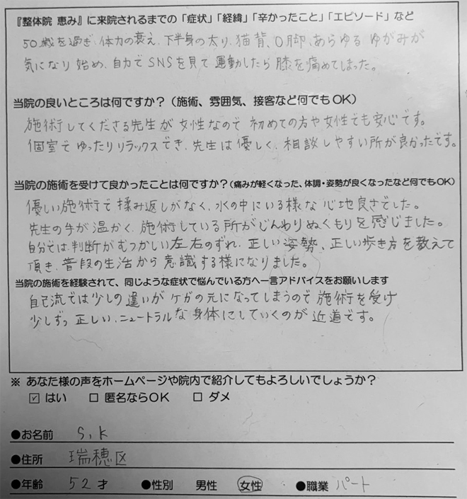 「整体院恵み 瑞穂院」は、お客さま一人ひとりとじっくり向き合い施術を行うため、女性と子供専用、完全予約制となっております。