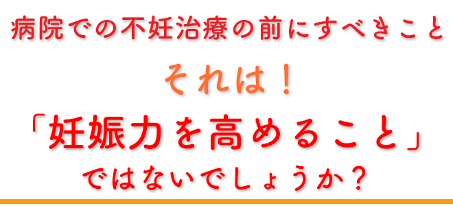 病院では、妊娠力がとても低くなっている状態を改善せず、「受精」「着床」の確立を高めることしかできません。