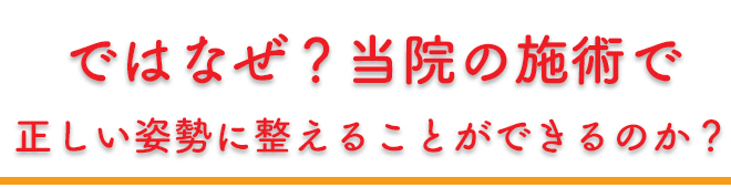 一般的なマッサージ、ボキボキ整体、指圧などでは、正しい姿勢に整えることはできないのです。