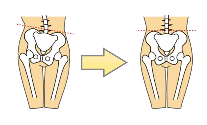 骨盤が左右に傾き、内臓の圧迫も加わり、子宮、卵巣、卵管が傾き捻じれる