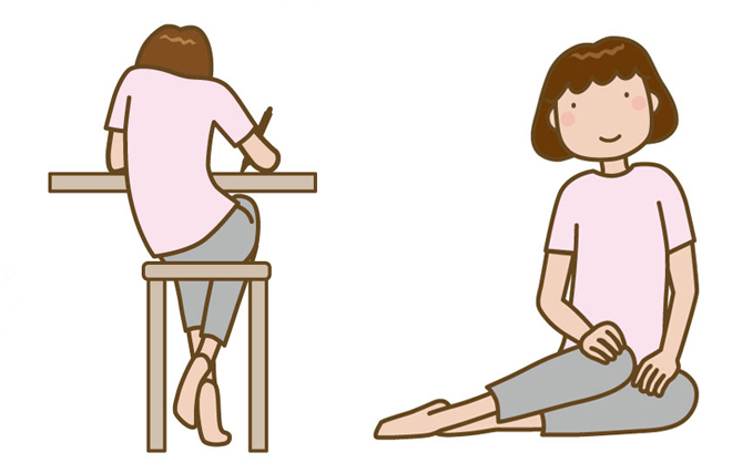 骨盤が後傾して、背中が丸くなることで、足を組みやすくなったり、正座を崩す横座り姿勢になることで、