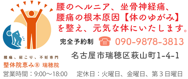 、一度【整体院恵み】の、体のゆがみを、正しい姿勢に整える、ボキボキしない整体を受けて『ヘルニア』のない元気な体を取り戻しませんか?